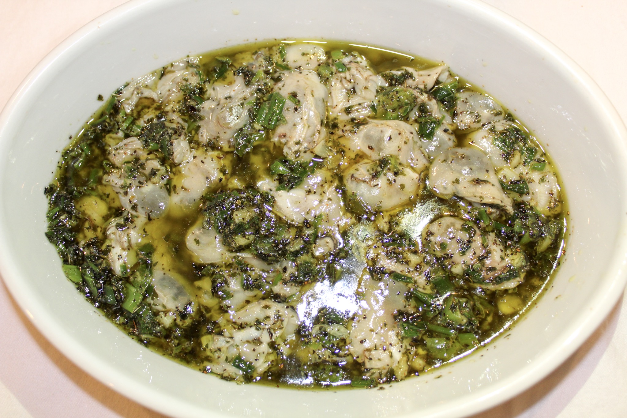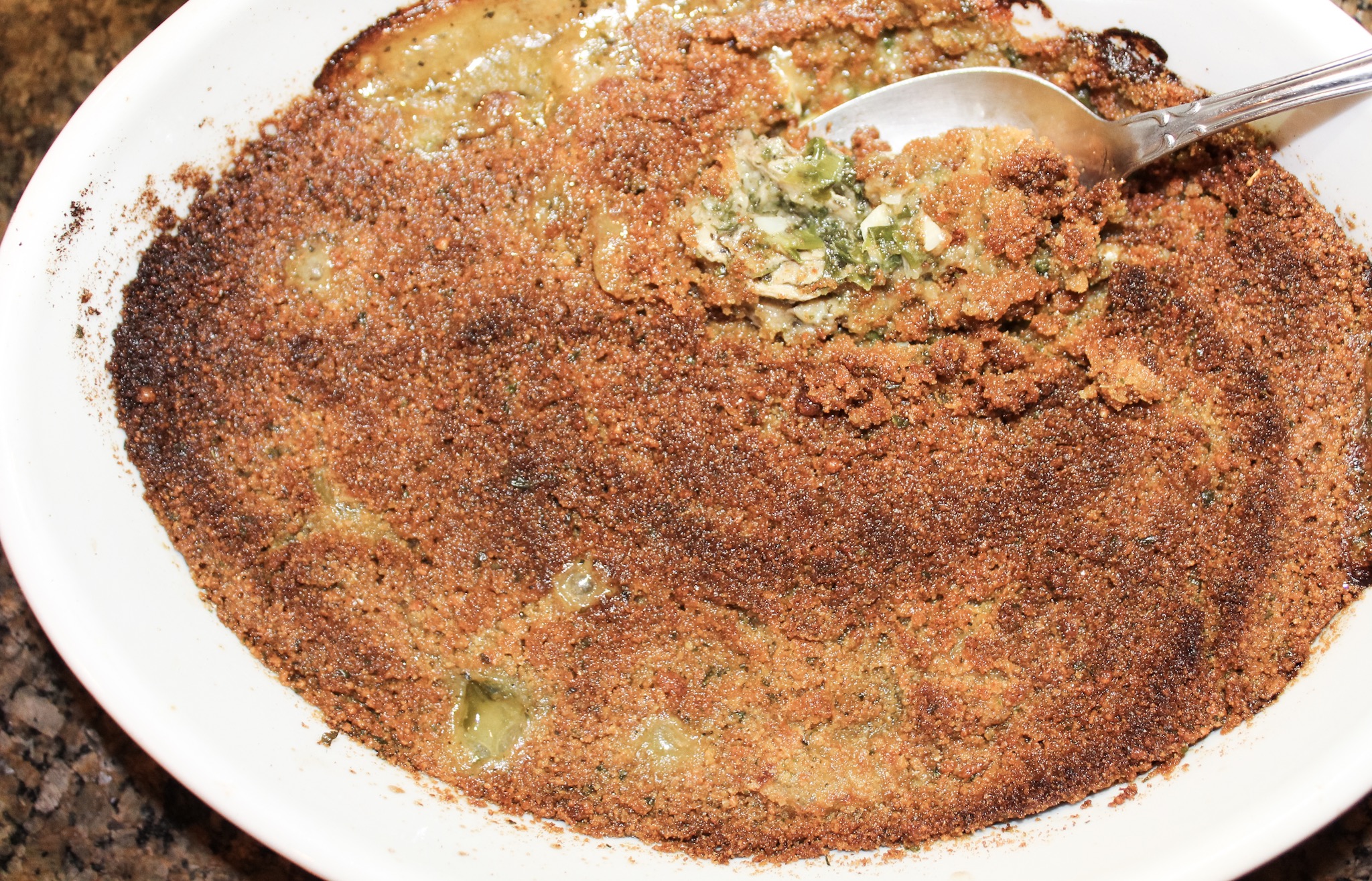 Rather than any type of cornbread stuffing, we always prepared garlicky baked oysters Mosca which seem to be the perfect accompaniment to turkey or pork. We would all fight over the baking dish at the end of the meal to get the crispy scrapings of bread crumbs, olive oil, and garlic.